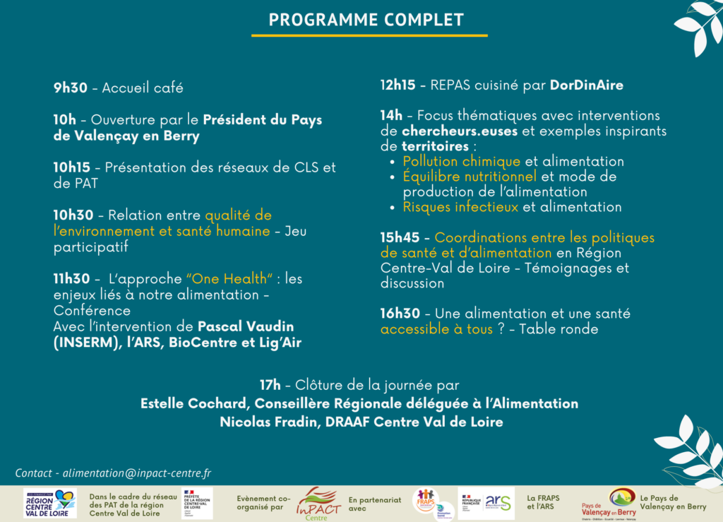 Cette journée a été organisée en partenariat avec l’Agence régionale de santé Centre-Val de Loire et la FRAPS Centre-Val de Loire par le Centre de ressources sur les PAT de Centre-Val de Loire, animé par InPACT Centre dans le cadre de sa mission confiée par la Région Centre-Val de Loire et la DRAAF Centre-Val de Loire.