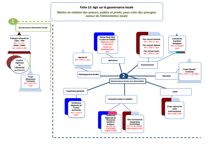 Les textes prévoient différentes formes de collaboration entre les acteurs publics et entre les acteurs publics et privés afin de créer des synergies autour de différentes thématiques, dont, directement ou indirectement, l’alimentation locale. Ces collaborations peuvent être spécifiquement instituées pour traiter de la question alimentaire locale (Fiche 12-1) ou relever de dispositifs plus généraux dans lesquels la question de l’alimentation locale se pose (présente fiche).