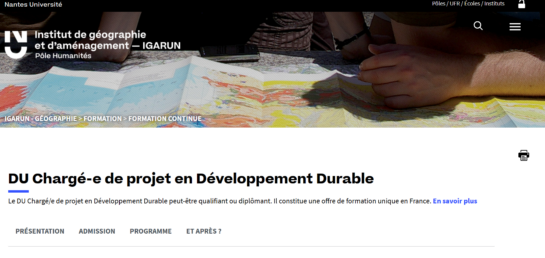Formation continue qui vise faire acquérir des compétences en matière de conduite et de gestion de projets de management du développement durable dans une activité professionnelle
